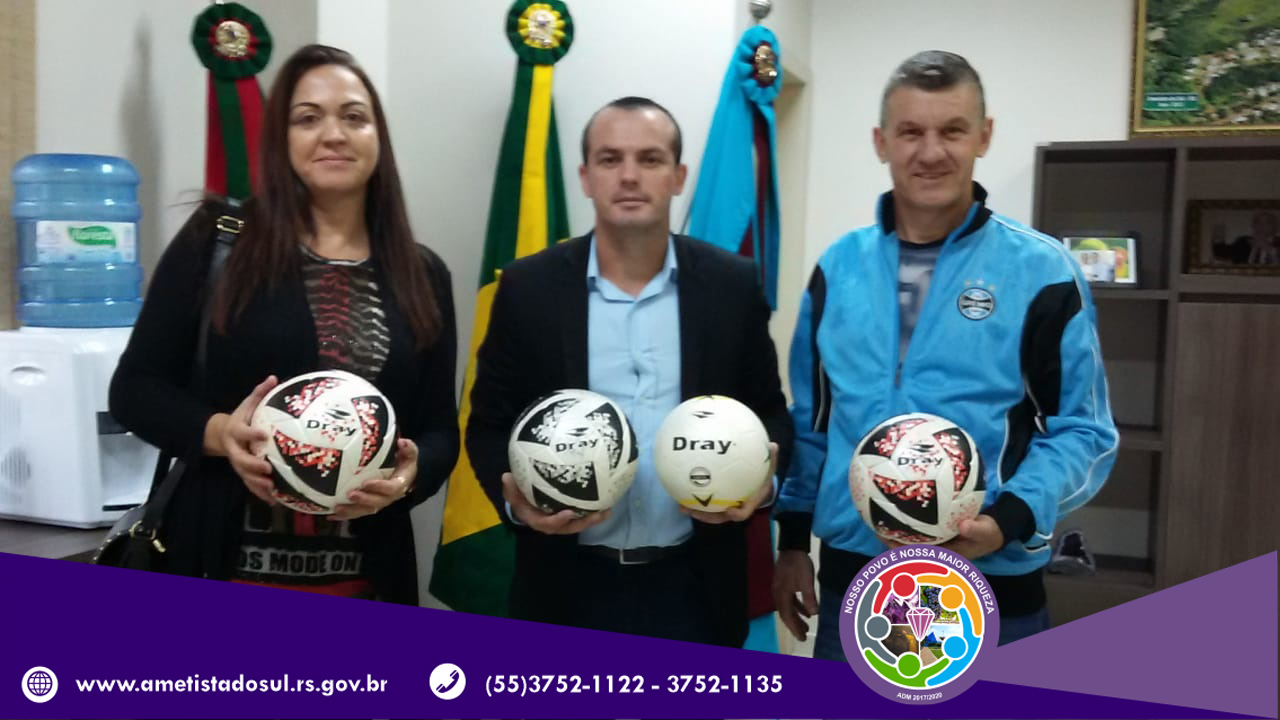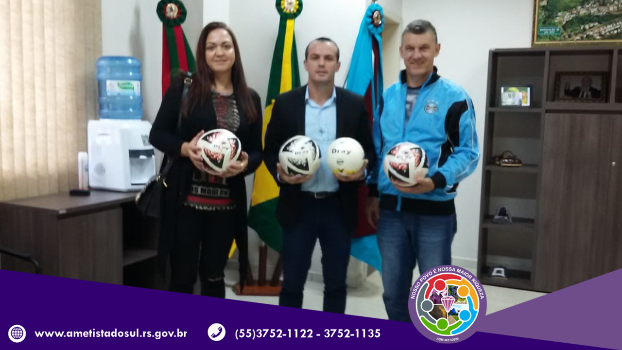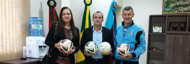 Giseli esteve fazendo a doação de bolas para a escolinha de futebol do Município. O prefeito Gilmar da Silva, juntamente com o diretor de esportes Alaércio Piovesan, recebeu o material com muita alegria.