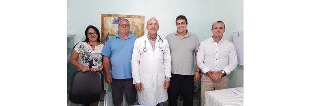Estiveram recepcionando o profissional, o prefeito Gilmar da Silva, Vice Sergio Colussi, Secretário da Saúde Pablo Alexandre dos Santos, e a Secretária Adjunta da Saúde Angelita Lucietto.