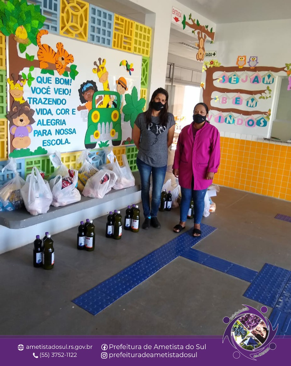 A distribuição priorizou famílias inscritas no Bolsa Família ou em situação de vulnerabilidade social no momento. Todo processo teve acompanhamento do Conselho de Alimentação Escolar e orientação da nutricionista responsável pela Alimentação Escolar no município. Os kits foram compostos por alimentos básicos, frutas e suco natural de uva e laranja, priorizando uma alimentação saudável e equilibrada, contendo ainda orientações escritas de como deveriam ser higienizados os alimentos ao chegar nas residências.