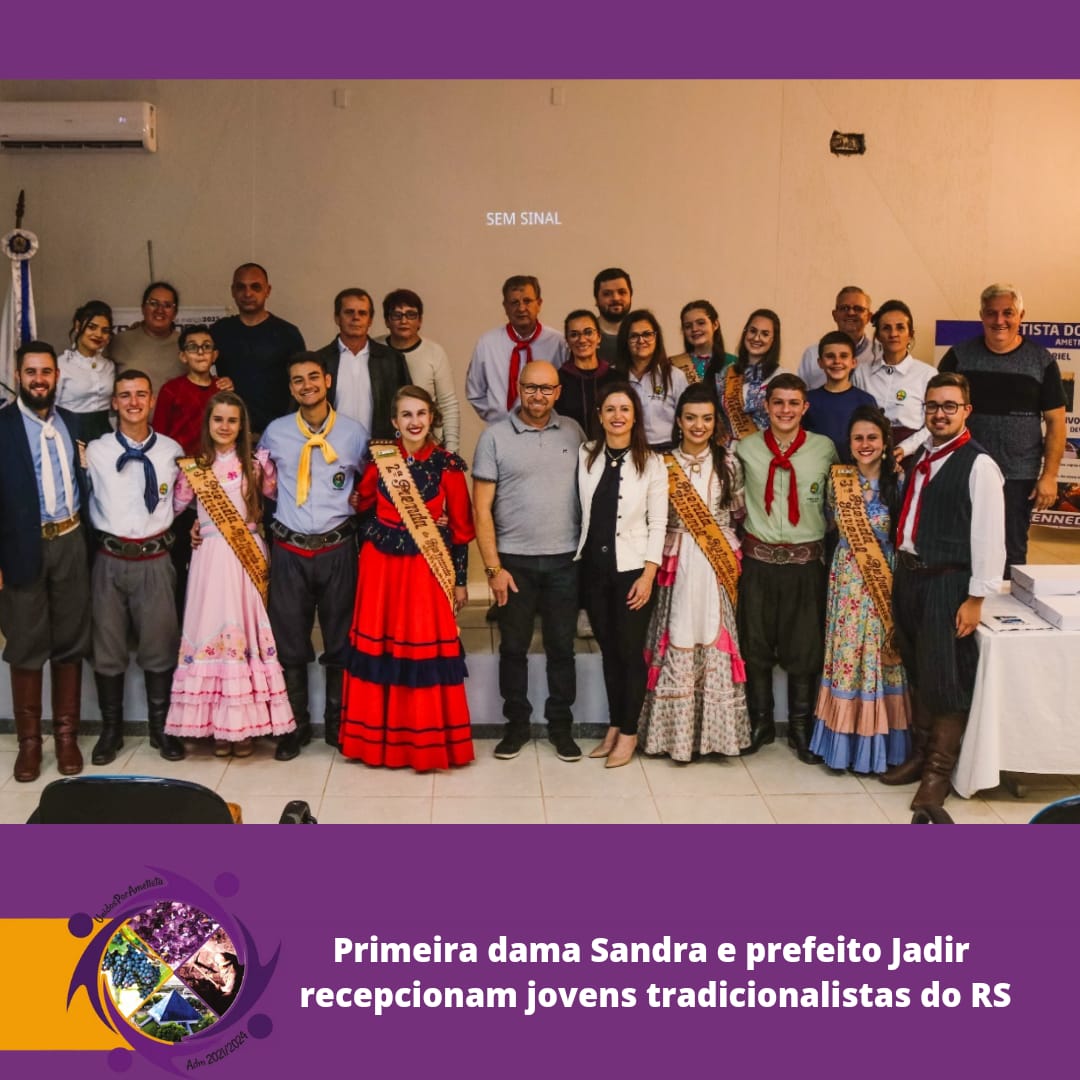 Para a primeira dama Sandra foi uma grande alegria recepcionar os jovens no Município. ‘Trata-se de um ato marcante e de grande significado, além do resgate cultural, a demonstração do amor ao tradicionalismo gaúcho, jovens honrando suas essências, algo marcante e grandioso. Eles nos trouxeram grandes aprendizados e nós tivemos a oportunidade de mostrar as belezas de Ametista do Sul. Nosso desejo é que possam levar sempre adiante a tradição gaúcha,’ destacou Sandra.