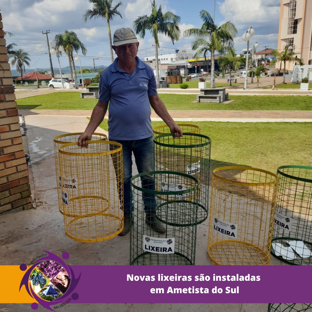 Novas lixeiras são instaladas em Ametista do Sul